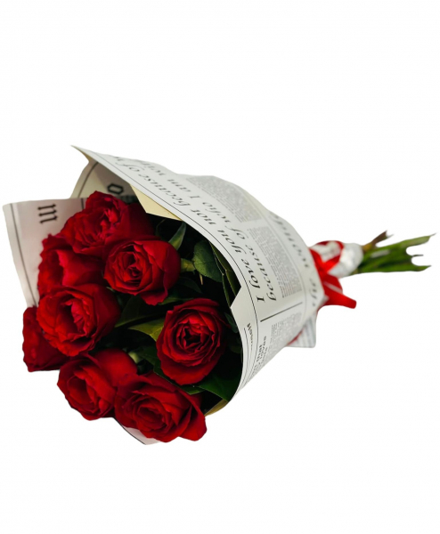 9 adet Vip Kırmızı Gül gazete kağıdı ile süslenmiştir.
