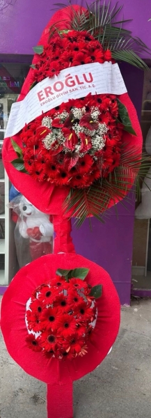 ÇİFT KATLI VİP CANLI ANTORYUM VE KIRMIZI CELBERALI ÇELENK