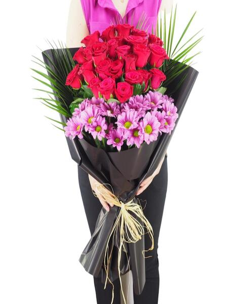 Kırmızı Güller ve Pembe Papatyalı Buket
