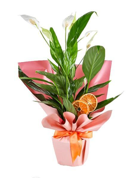 Hasır Tüllü Spatifilyum Saksı Çiçeği