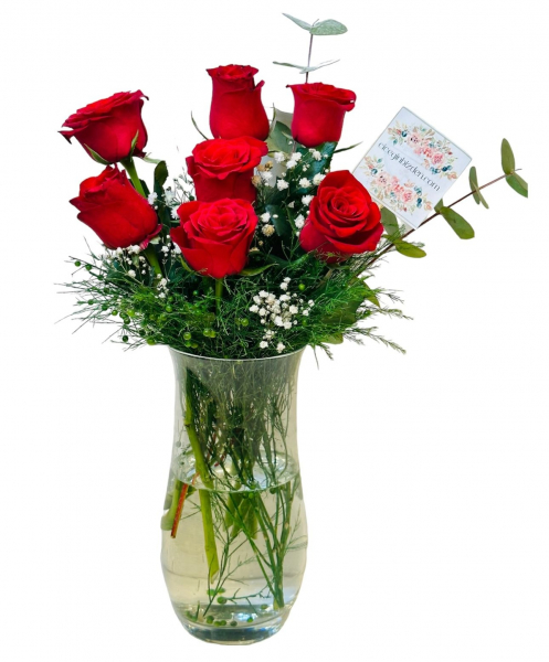 Paşabahçe Vazoda 5`li Kırmızı Gül